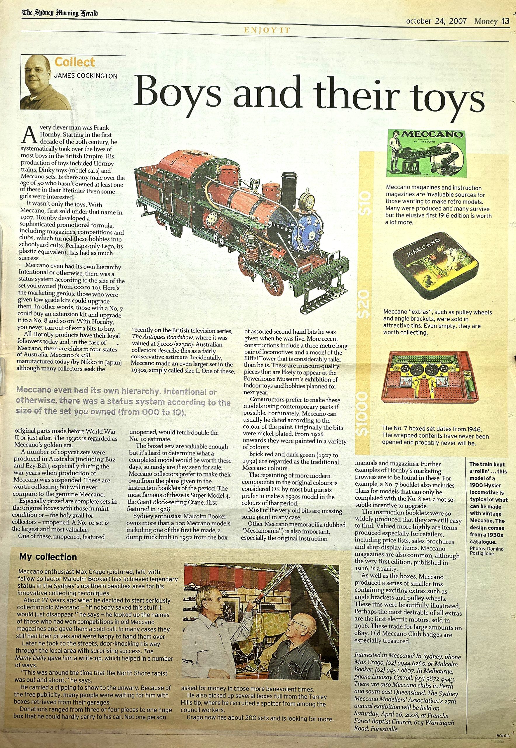 About History The NSW Meccano Modellers Association began at a dinner on 18th of May 1981 to foster all things Meccano. This is the first ever newsletter: 2007 Article from The SYdney Morning Herald: Double click for a larger view in most browsers!