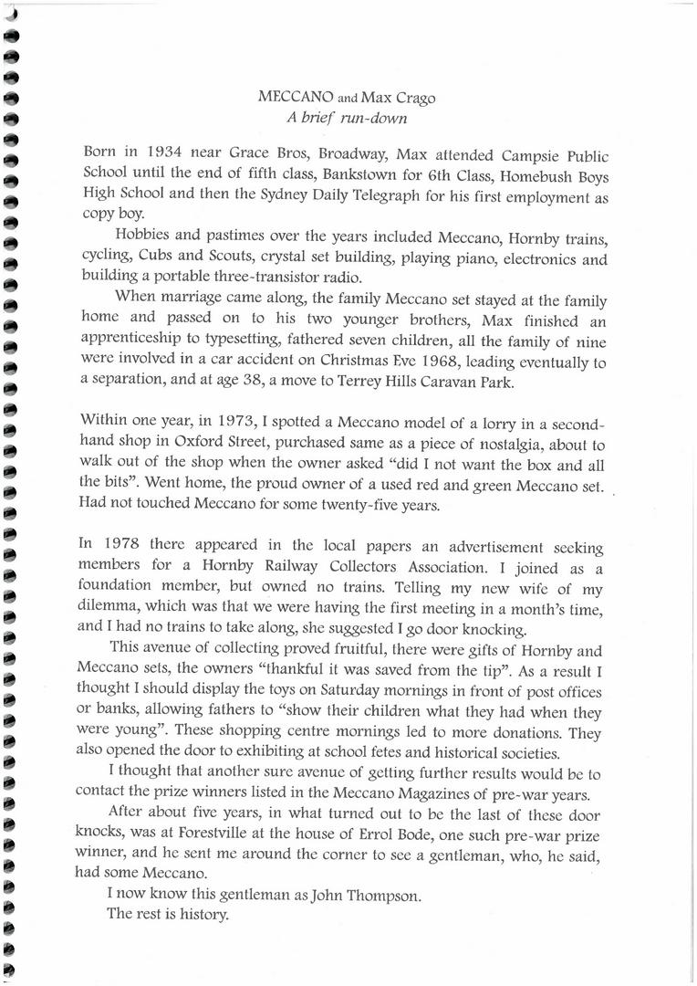 Here is a collection of photos and documents collated by Max over recent years. Many originate from the Manly Daily which reported Max and Malcolm’s Meccano over 45 years. Max bound it into a book which was recently scanned by Joseph for the club archive.