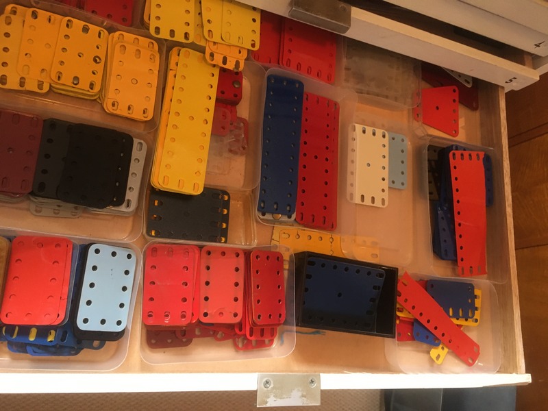 Ken Freeman, our Meccano member from Picnic Point, is selling his Meccano in one lot. The collection (see photos) is mainly red and green in the vicinity of a No 10 set and with extras such as small motors, loaded sacks, theme sets and various red and green accessory outfits with instructions. There is also a cabinet with pullout trays suitable for storing Meccano.