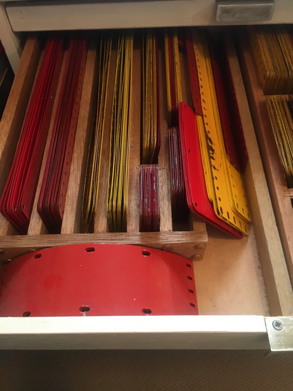 Ken Freeman, our Meccano member from Picnic Point, is selling his Meccano in one lot. The collection (see photos) is mainly red and green in the vicinity of a No 10 set and with extras such as small motors, loaded sacks, theme sets and various red and green accessory outfits with instructions. There is also a cabinet with pullout trays suitable for storing Meccano.