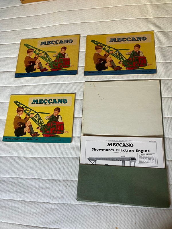 Patrick Barrie is selling his late father’s No 10 Meccano set including its 4 drawer cabinet in one lot. The red and  green set and manuals are dated in the late 1950s (see photos).