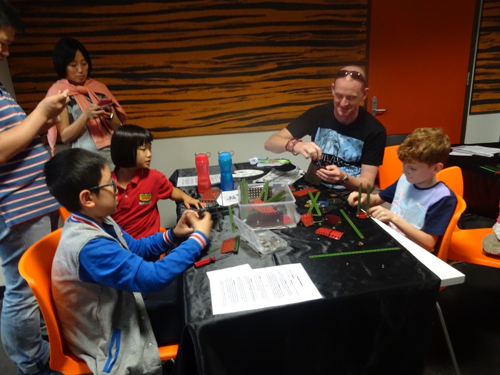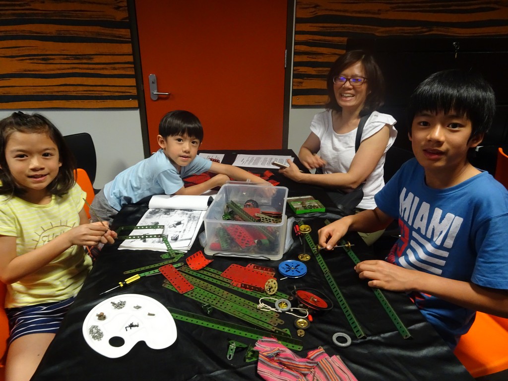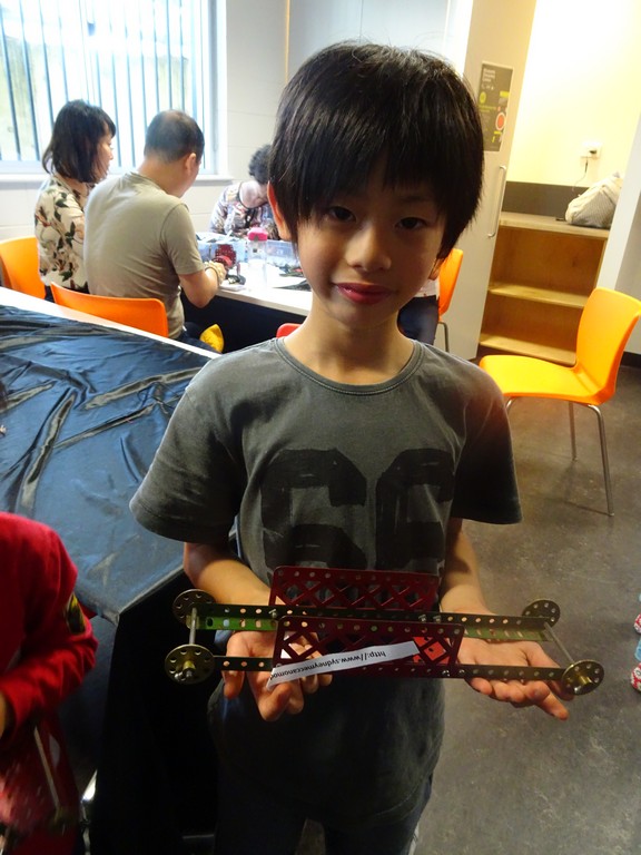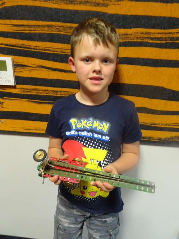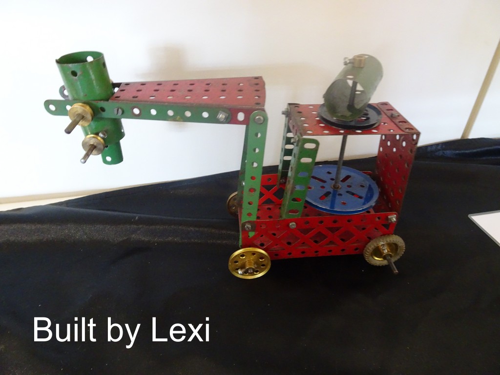 We supplied 6 Meccano sets, about a modern Number 6 set, with extra interesting parts and plenty of gears. There were also a clockwork motor and chain and sprockets (with pliers) for the adventurous. We also supplied a 1925 manual for each set (about 1.33 times original size) for inspirations, parts list and some inspirational words from the Meccano Ltd. Also to inspire them I had colour pictures of myself (when 9) and my brothers with models, some original, but also pictures of the robot, the grandfather clock and the Number 9? set cargo ship (my father helped my brothers build).